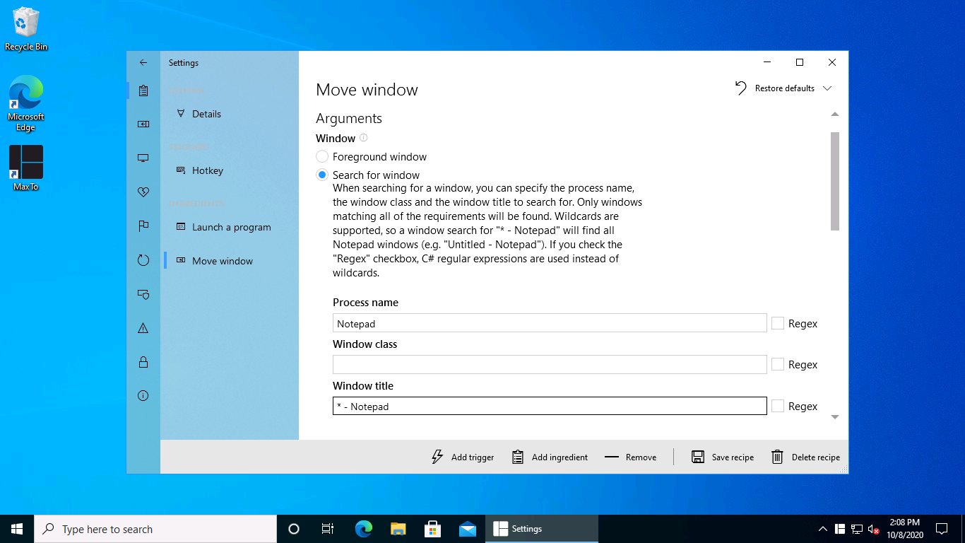 When creating some recipes, you may need to find a specific window to operate on it. This how-to explains how.